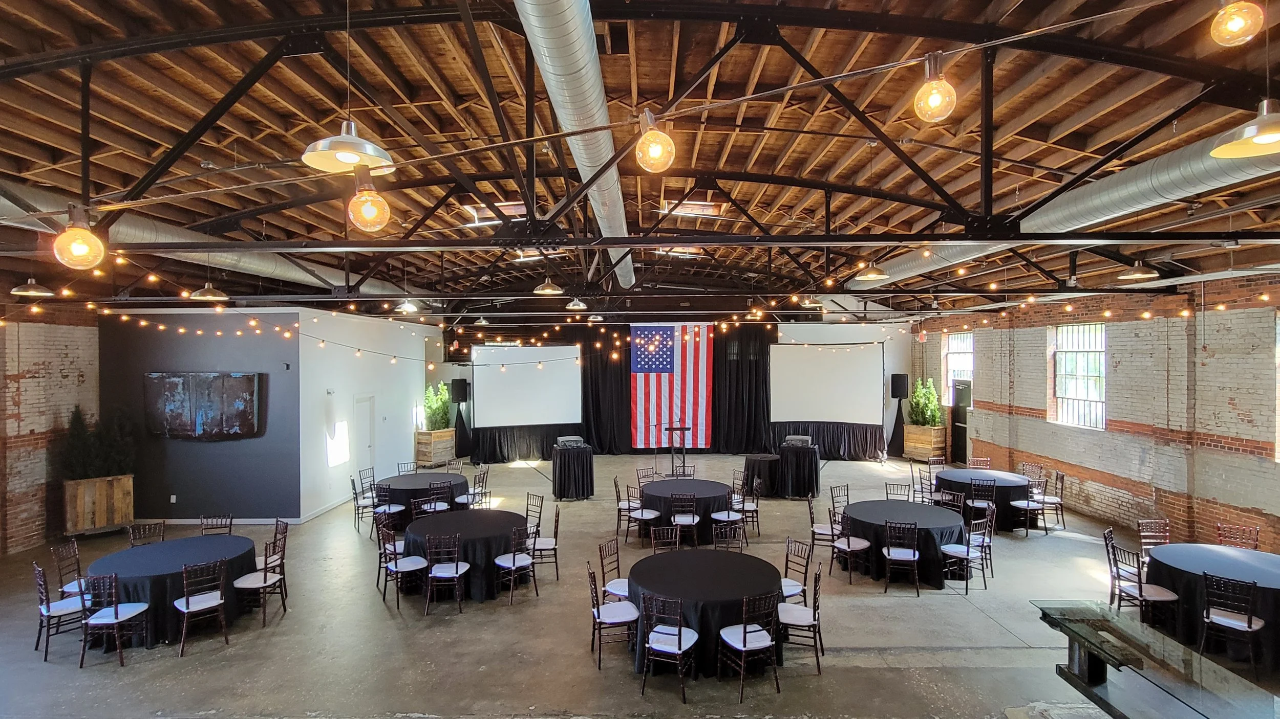 Host an unforgettable gathering at Studio 215, Fayetteville’s premier historic-industrial event destination, located just minutes from Fort Bragg. Originally a 1930s autobody shop, our striking warehouse space has been thoughtfully transformed into a versatile canvas for promotion ceremonies, military balls, and chaplain-led retreats , or an elegant MilSpo social. Situated in the heart of historic downtown, our venue blends the raw character of original exposed brick and vaulted wood ceilings with modern luxuries—like our elevated mezzanines and private enclosed patio—to ensure your military honors or social gatherings are executed with the prestige they deserve.